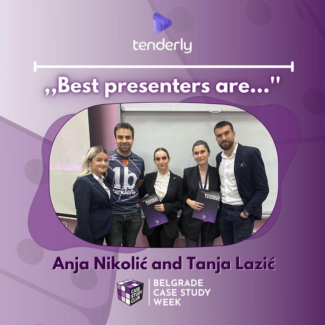 Predstavljamo vam ovogodišnje partnere Belgrade Case Study Week-a koji su zadali studije slučaja za Case turnir, kao i pobednike samog turnira i najbolje prezentere. Partneri su kroz zanimljive studije slučaja omogućili našim takmičarima da se upoznaju sa različitim industrijama i suoče sa raznim izazovima tokom rešavanja. Kompanije koje su zadale veliku studiju slučaja za Case turnir bile su Tenderly, platforma za programiranje na Ethereum mreži, i Grundfos, svetski lider u proizvodnji pumpi i pumpnih rešenja. Zahvaljujemo se svim partnerima na pruženoj podršci projektu! Takmičari koji su ponudili najbolje rešenje kompaniji Grundfos su članovi Tima 1: Lea Leković, Aleksandra Saitović, Luka Cvetković i Tanja Trtica. Takmičari koji su ponudili najbolje rešenje Tenderly-u su članovi Tima 4: Anja Nikolić, Viktorija Barišić, Luka Nišić i Uroš Cvetković! Za najbolje prezentere izabrane su Anja Nikolić i Tanja Lazić.