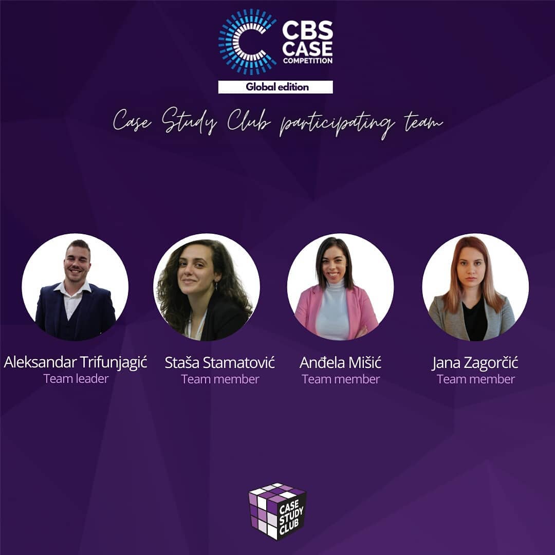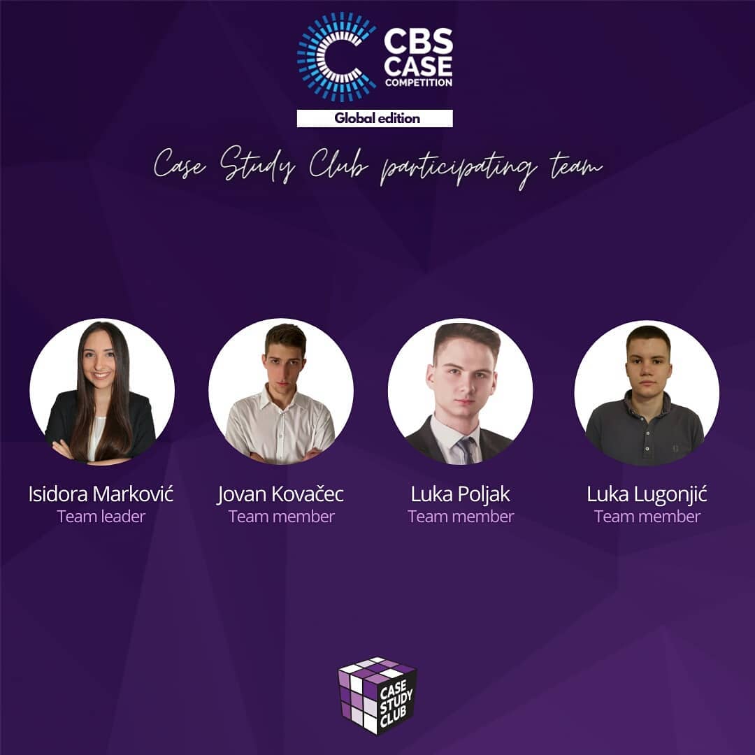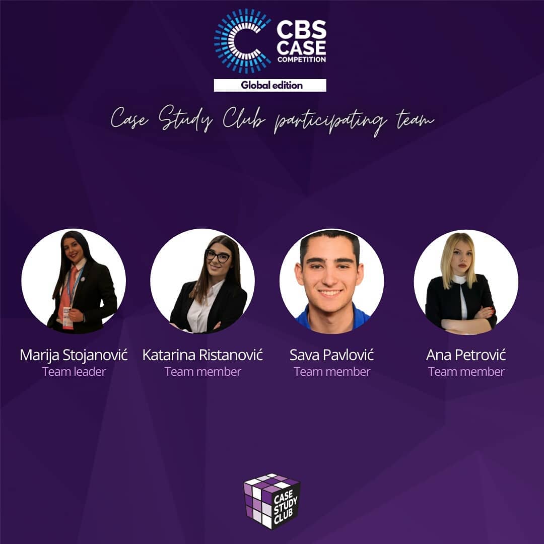 CBS Case Competition je prestižno svetsko takmičenje u rešavanju poslovne studije slučaja koje organizuje jedna od najpoznatijih poslovnih škola u Evropi – Copenhagen Business Scool. Takmičenje se održava u dva formata – CBS Invitational Case Competition i GBS Global Case Competition. Članovi Case Study Club-a učestvovali su na CBS Global Case Competition-u, na kom je naš klub predstavljalo 5 timova. Njima su u pripremi pomogli alumni članovi, Marko Damjanović, Vladimir Stojiljković i Nina Đelić, koji su sa njima podelili svoje dugogodišnje takmičarsko iskustvo kroz različite radionice i predavanja. U ovom formatu takmičenja učestvovalo je više od 450 timova iz 80 različitih država, koji su imali 24h da reše reše studiju slučaja na temu održivog razvoja koju je zadala kompanija Ikea.