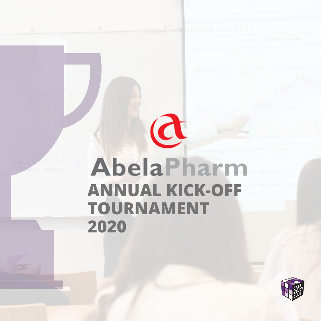 U okviru godišnjeg plana i programa rada Case Study Club-a za akademsku 2020/2021. godinu, a u cilju ostvarenja naše vizije i strateškog plana da članovima kluba pružimo priliku da pokažu svoje znanje učestvovanjem na takmičenjima, ove godine 24 najistaknutija člana dobila su poziv da učestvuju na AbelaPharm Business Case Tournament-u koji je održan u okviru ovogodišnjeg Annual Kick Off Tournament-a, u periodu od 2. do 17. novembra 2020. godine.